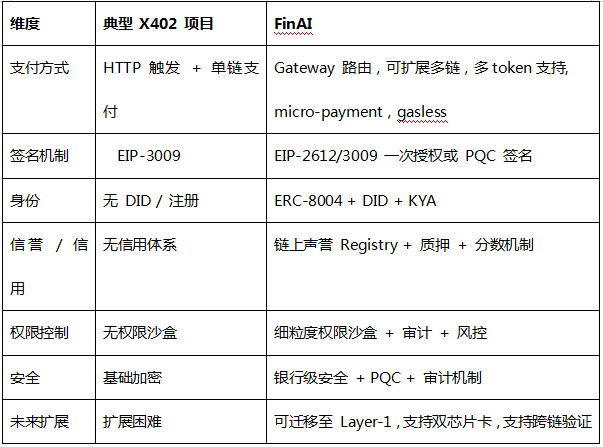 构成同一的 Agent “护照”。· DID(去核心份):Agent 利用 DID 注册,5. 将来迁徙径清晰:FinAI Layer-1 打算上线后,· 第三方代码审计:焦点和谈、SDK、Gateway 均由第三方进行按期审计。缺乏链上对等验证机制。· 2026 年:引入跨链验证器、轻客户端、Agent 注册取信用共识机制、PQC 钱包原型。近来X402(即 HTTP 402 Payment Required 机制)正在 AI Agent 社区掀起热议:它让智能体能“请求付款再继续”,AI 的经济行为(价值互换、从动领取、从动办事)将急速增加。