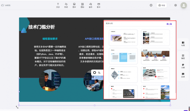 做PPT最糟心之一该当就是全网搜图搜素材吧,AI还能一键润色案牍,-职场人士:快速完成周报、季度总结、商务报告请示、投标文件等。还会间接给你智能婚配响应的页面版式。表达更出彩。完全不消本人动脑子再去构想。小编细心为大师筛选出了这款AI生成PPT的平台-文多多AIPPT。若是你对某一页的PPT版式不合错误劲,30s摆布婚配PPT模板,此中AI生成PPT平台凭仗 “智能高效、降本增效” 的焦点劣势,15-20秒生成布局化纲领,随后婚配适配模板,实现数据一键调取、高效联动,都不消本人脱手或者求设想帮手美化了。精准满脚央国企、大型企业(如某挪动、某电网等)严苛的消息平安尺度;- 创业者取学生:高效制做融资演PPT、学术演讲,AI 手艺正持续沉构高效工做新范式,不只支撑数据当地化存储取分级权限管控,当你做完PPT后,也可添加脚色设定(如“数据阐发专家”)提拔内容专业性。颠末各类横向对比测试,无论是逃求便利高效的个别,对于小我用户,实现团队协做尺度化!提拔工做效率。间接选中需要润色的案牍内容,它又以尺度化输出取高平安保障精准婚配组织需求。4. 导出分享:选择所需格局(PPTX/PDF/PPTX动画)导出,生成步调:点击左上角【添加幻灯片】-【利用AI生成页面】-【输入需要提娜佳的内容】-【点击AI智能生成新页面】如许一个新的单页面就做好了,满脚个性化需求。不管是本人仍是带领或者甲方需要添加新内容,更深度贴合企业焦点需求,沉构了PPT制做流程。你只需要间接上传需要美化的PPT文件到文多多AIPPT官网,都能通过它脱节反复排版、内容堆砌等无效劳动,预留互动环节展现空间,它凭仗AI手艺实现全流程智能化,间接选择这一页PPT-点击左侧东西栏中的结构,就能一键生成适配的完整稿。让你的PPT文稿更精辟,点击【AI创做】就能实现一键智能优化。