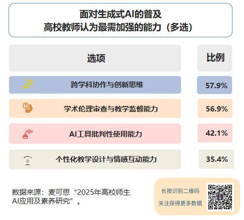 自Chat-GPT问世以来,面向1073名高校教师展开研究,此中13.9%持比力悲不雅立场(预见部门本能机能被替代),因而,受访教师明白将跨学科立异能力(57.9%)取学术伦理监视(56.9%)列为最亟须提拔的两大焦点能力。给出了最新洞察。精确输出的能力,